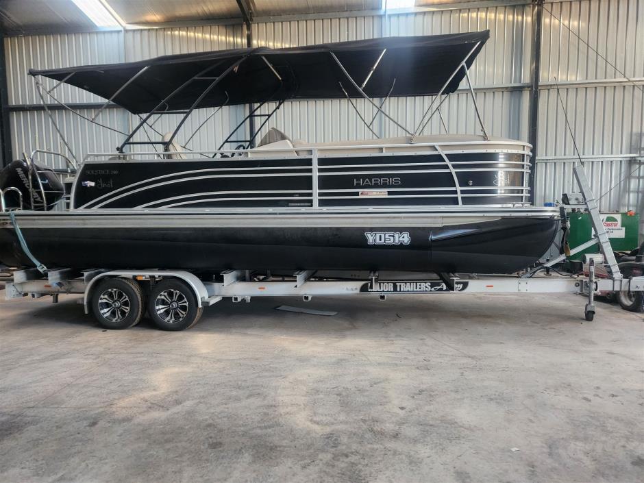 HARRIS SOLSTACE MODEL 25FT 7.9METERS MERCURY 25 FORSTROKE LOW HOURS TWO FULL LENGTH BIMINI TOPS CAN USE ONE OR BOTH JUST UNZIP. FULL SIDE CURTAINS PREMIUM STEREO, DEPTH GAUGE AND FISH FINDER ON CUSTOM MAJOR FULL ALLOY EYEBEAM TRAILER FOR MOR INFORMATION ON THIS BOAT GIVE PHIL MORISON A RING @ BENDIGO SKI BOAT CENTRE 0418 511 444